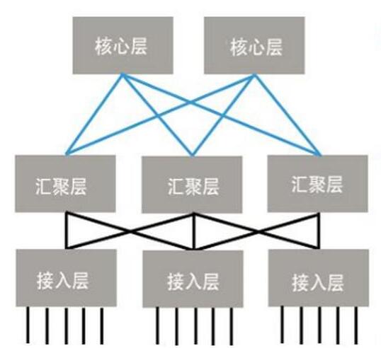 二层网络没有汇聚层,只有核心层和接入层,一般来说,二层网络只有交换功能,交换机根据MAC地址表进行数据包的转发,有则转发,无则泛洪。二层网络的组网能力非常有限,所以一般只是用来搭建中小型局域网。