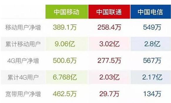 2018年6月三大运营商的用户对比如上,可见,中国移动的宽带用户数,6月新增462.5万,远远超过中国电信的宽带用户新增数量134万,但是三大运营商里就连宽带增幅垫底的中国联通也增加了29.7万。所以,说中国电信的宽带用户数变少了是个伪命题。