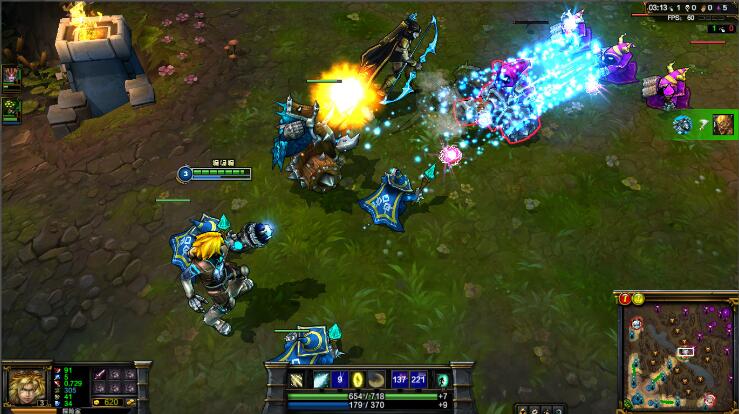 兰博打亚索就比较省事了,他窜兵我们就烤他,第一件装备出一个护臂,他想上来消耗我们,就W开盾然后给E减速风筝即可,也没必要去追求线上单杀,打出小小的压制,稳住我们自身发育,等到了团战期亚索就不如我们了。