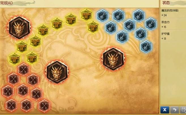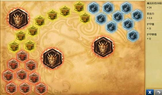 红色固定护甲穿透、黄色固定护甲、蓝色成长魔抗、精华固定护甲穿透。