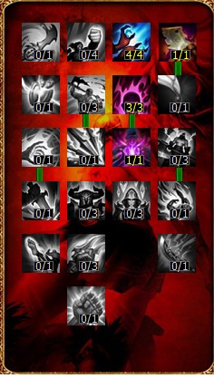 攻击天赋9点。4点巫术+1点屠夫+3点思想之力+1点奥术精通。巫术在于减少狼人的冷却时间,这样,让打野的恢复能力更加客观。屠夫让打野更顺畅,等级提升更快。思想之力和奥术精通,增加法强,可以增加伤害和恢复能力。我们用巫术代替狂怒,因为狼人技能的攻速加成,所以我们放弃狂怒改为缩短冷却的巫术。英雄联盟S4嗜血猎手狼人打野天赋加点图。